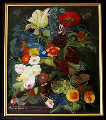 des bouquets de fleurs, souvent sur fonds sombres, restant ainsi proches des grands chefs d’œuvres des maitres hollandais. Irène poursuit aujourd’hui son histoire d’amour de l’Art.