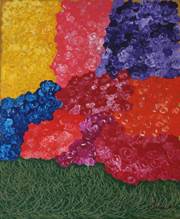 Peignant parfois avec ses doigts, Irène utilise divers artifices originaux pour les finitions de ses toiles.