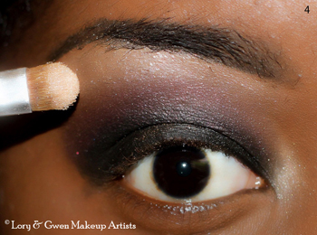 3 - Appliquez la couleur intermédiaire dans "le pli palpébrale", avec votre pinceau "estompeur". (Choisissez cette couleur en fonction du reflet que vous souhaitez donner à votre smoky ).