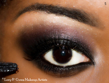 5 - Faire un trait de crayon khôl à l'intérieur de l'œil ainsi qu'au ras des cils inférieurs puis estomper avec le pinceau "estompeur " Finissez par l'application de votre mascara préféré !