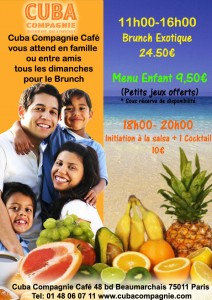 Tarif : 24,50 euros le brunch ; 10 euros initiation à la salsa +un cocktail ; 9, 50 euros menu enfant.ya