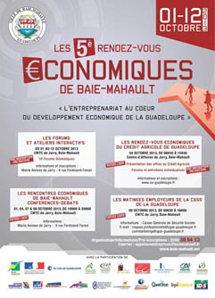 Sam 12 Oct : Pour sa 5 ème édition, les Rendez-vous Economique de Baie-Mahault vous accueilleront du 01 au 12 octobre autour de la thématique: "l'entreprenariat au cœur du développement économique de la Guadeloupe