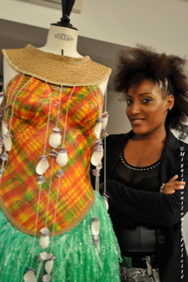 Krystel Markos : D’abord, j’ai envie de faire bouger les choses dans la mode antillaise. J’ai créé ma propre marque de vêtement et je n’habille pour l’instant que la femme. Ma première ligne de vêtements s’appelle Ethnico-Chic. J’habille toutes les femmes, toutes les ethnies, toutes les peaux. J’aime les mélanges, les métissages. Je mélange par exemple la Wax à la fourrure. J’aime l’inattendu. La femme Krystel Markos est une femme active, élégante, chic et fière de ses origines. Ma clientèle est large. Des femmes de tous âges et de toutes les tailles. Je fais du sur mesure.