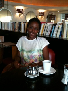 Elle arrive souriante place du Palais royal à l’ombre de la Comédie française, croyant à tort être à l’heure. On le lui fait remarquer. Nathaly Coualy vérifie l’heure du rendez vous sur son téléphone portable et se confond en excuses. Et déjà elle est pardonnée. Le choix du restaurant se fait rapidement, elle a « faim ». La jeune femme s’assied, demande à brancher son smart phone, commande un coca light et un tartare. Elle dénoue sa crinière blonde et frisée, plante ses yeux « verts kakis » dans les vôtres et crée un trouble dont elle n’est pas consciente. Le temps semble s’être suspendu. Comment ignorer son regard qui hypnotise ? « La couleur de mes yeux esttrès importante », lance t’-elle ironique et amusée comme pour passer à autre chose.
