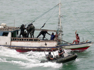 «Pour échapper aux contrôles, les bateaux de pêche opèrent en flottille. Quand ils nous aperçoivent, les pêcheurs de ces «tapouilles» larguent leurs filets, se regroupent et filent vers les eaux brésiliennes. Ils reviennent quelques jours plus tard les récupérer », témoigne le major Bernard Lecomte qui commande la vedette Mahury basé à Cayenne. Malgré les opérations d’abordage, les saisies restent modestes : 52 tonnes de poissons saisies sur 42 navires illégaux en 2012.